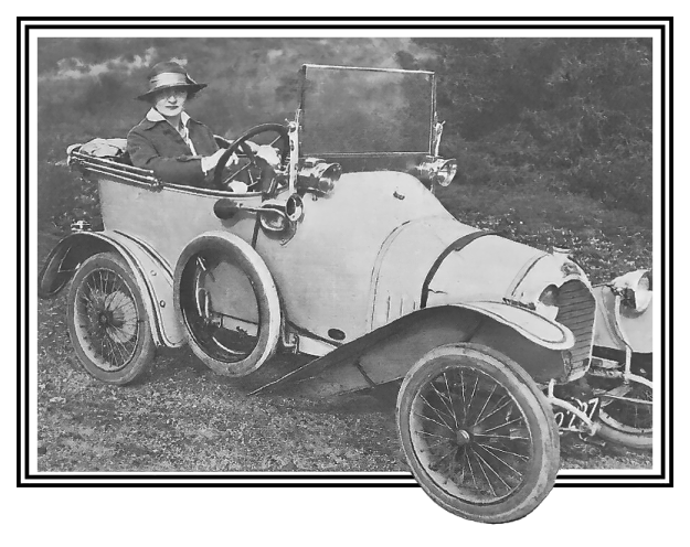 MADAME BULLOUGH, DONT CERTAINES PHOTOGRAPHIES FIGURENT SUR LES PAGES PRÉCÉDENTES, EST UNE PASSIONNÉE D’AUTOMOBILE ET UNE BONNE CONDUCTRICE.
