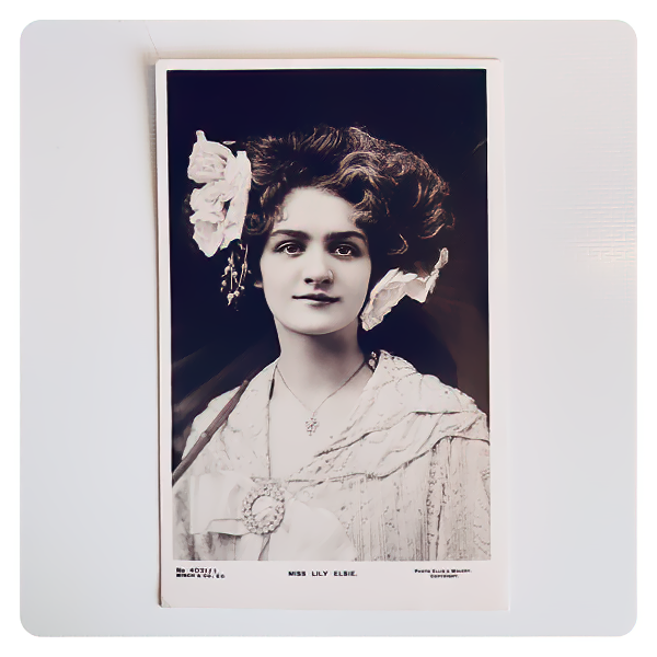 J’AI À TOUTE LES FOIS UNE IMAGE BIEN PRÉCISE DANS LA TÊTE. IL FAUT S’IMAGINER QUE LE TOUT PREMIER DÉTENTEUR À AVOIR CONSERVÉ CES ALBUMS, A PU VOIR LILY ELSIE SUR LA SCÈNE. CETTE PERSONNE L’A PROBABLEMENT AUSSI APPLAUDIE ! BREF, CE SONT DES OBJETS TRÈS PRÉCIEUX POUR MOI.
